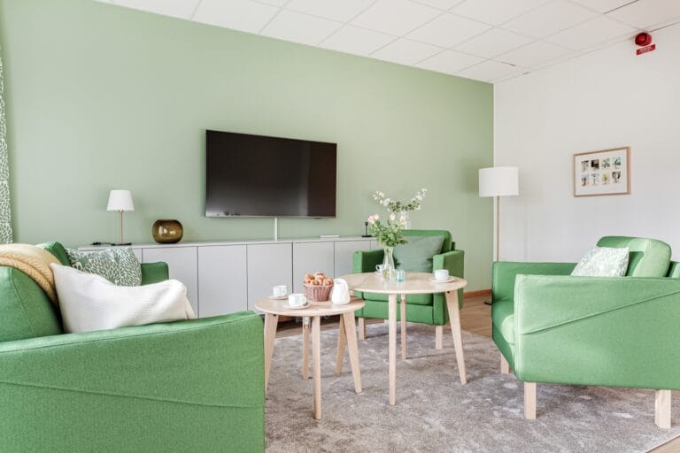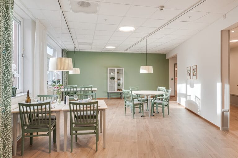Lokalerna är fräscha och ändamålsenliga med en öppen känsla. Lägenheterna ligger i anslutning till enhetens gemensamma utrymmen, kök med matsal och vardagsrum samt balkonger.