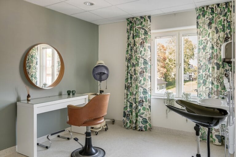 På Villa Vallonen finns en salong där de boende kan boka tid för klippning, hårtvätt och nagelvård för händer och fötter.